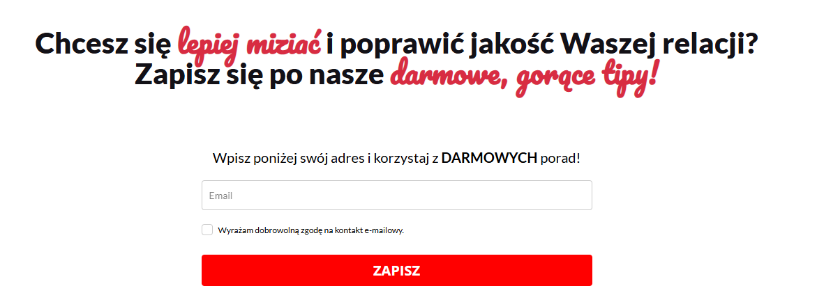 Formularz zapisu na stałe osadzony na stronie www zbierający zapisy do newslettera bezpośrednio do systemu wysyłkowego.